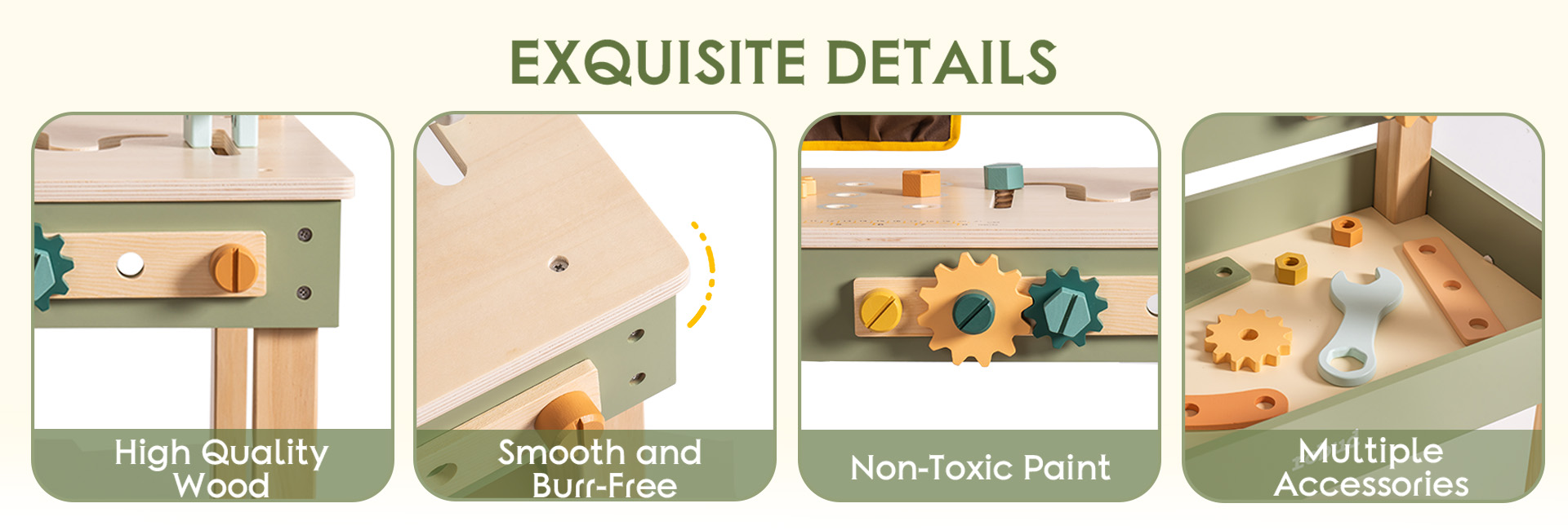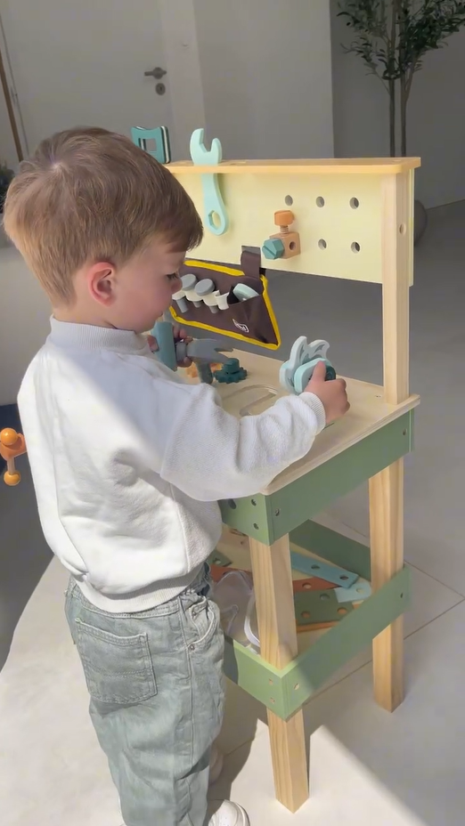 Favorisce la coordinazione occhio-mano: Utilizzare attrezzi reali in un ambiente supervisionato aiuta a sviluppare abilità motorie fini, capacità di problem-solving e concentrazione mentre i bambini lavorano su progetti.