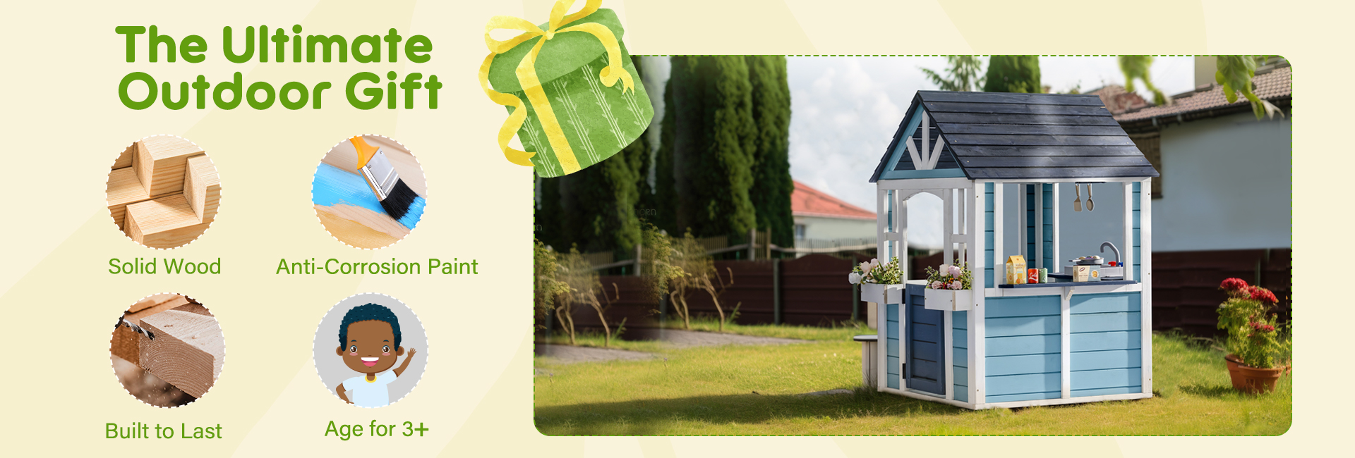 GIOCO E APPRENDIMENTO ALL'APERTO: Progettata per il gioco all'aperto, la casa da gioco ROBUD presenta una forma di casa realistica in cui i bambini possono mettere ingredienti e giocattoli all'interno per un'esperienza realistica. È perfetta per sviluppare l'immaginazione e le abilità pratiche nella natura.