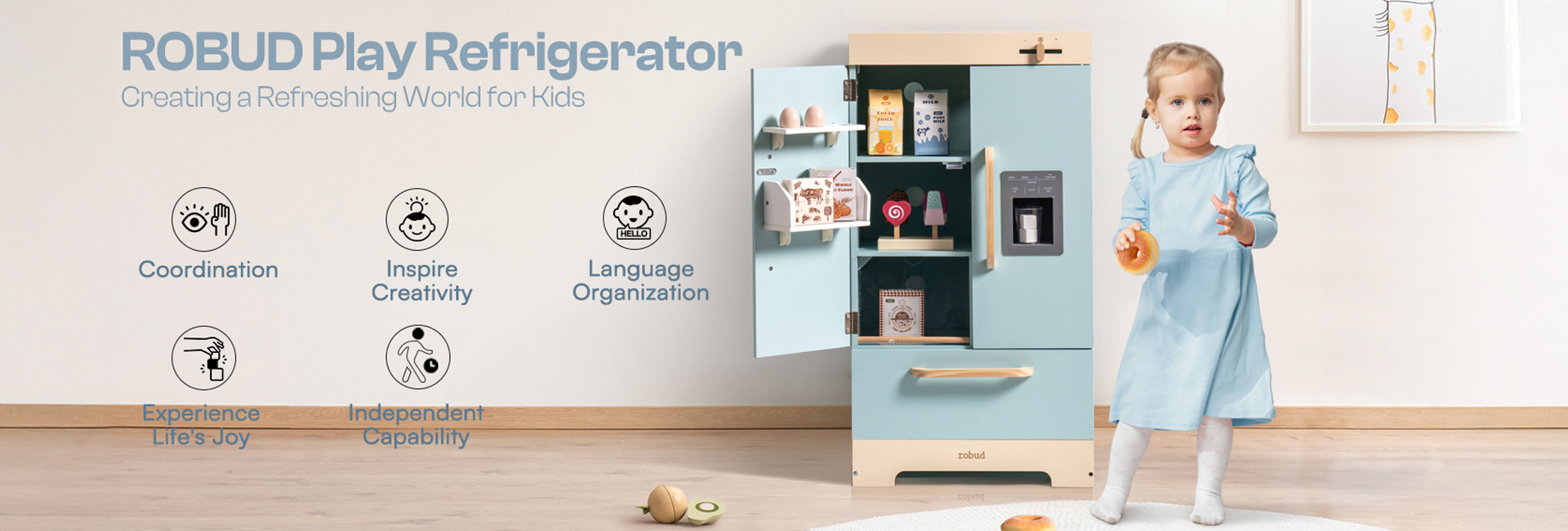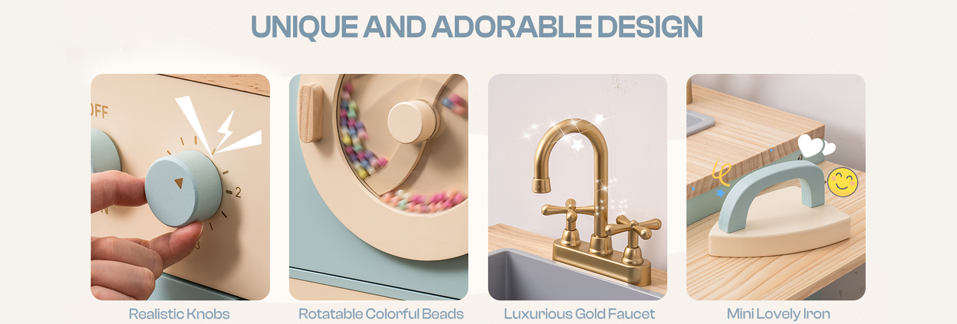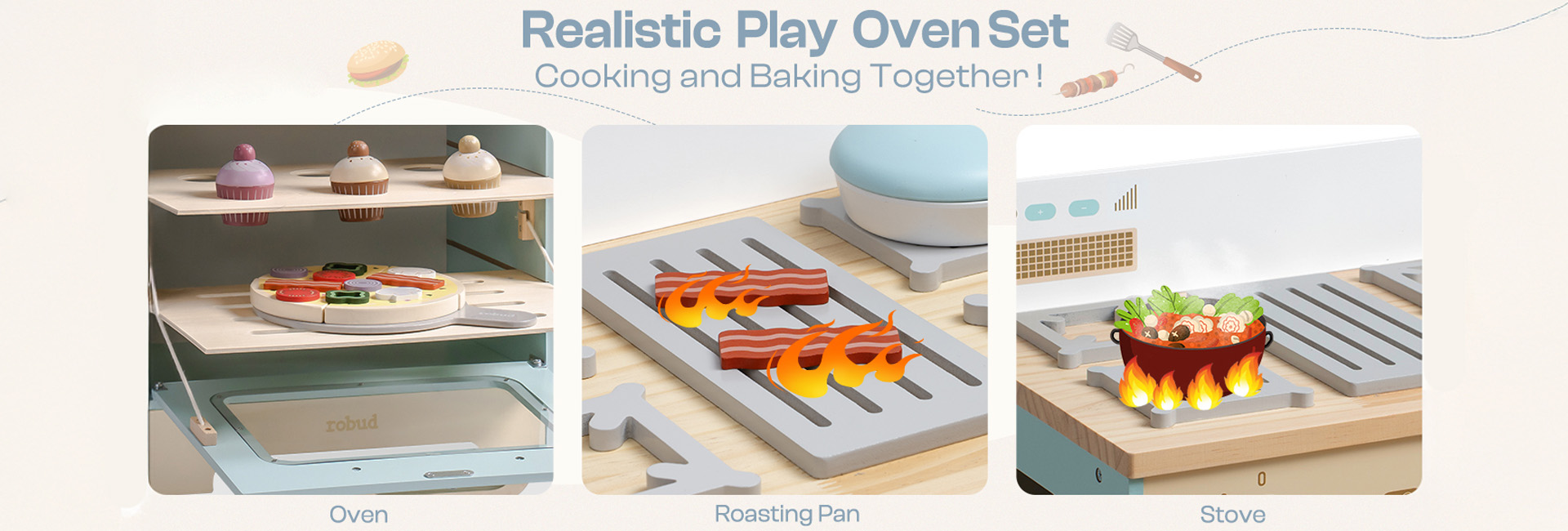 👪CUCINA ANGOLARE INTEGRATA: Il set di cucina giocattolo ROBUD Deluxe include una cucina giocattolo, un forno, un frigorifero e una lavatrice, ciascuno progettato con cura per fornire ai bambini un'esperienza di gioco completa e accendere la loro passione per la vita.