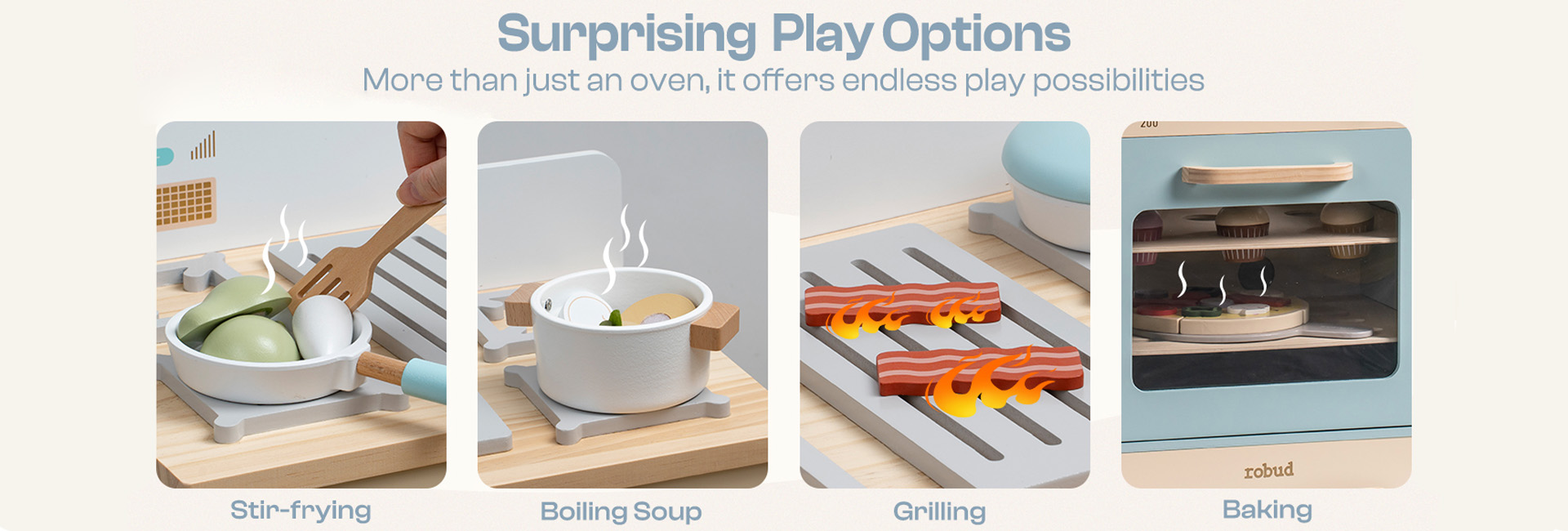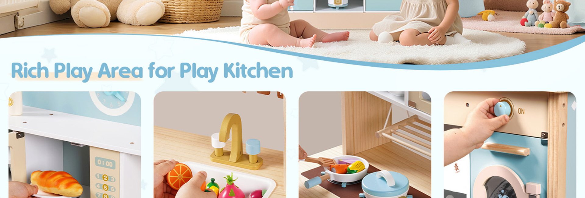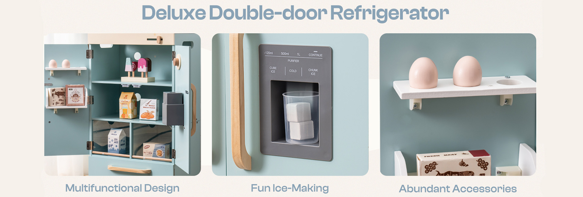 👪CUCINA ANGOLARE INTEGRATA: Il set di cucina giocattolo ROBUD Deluxe include una cucina giocattolo, un forno, un frigorifero e una lavatrice, ciascuno progettato con cura per fornire ai bambini un'esperienza di gioco completa e accendere la loro passione per la vita.