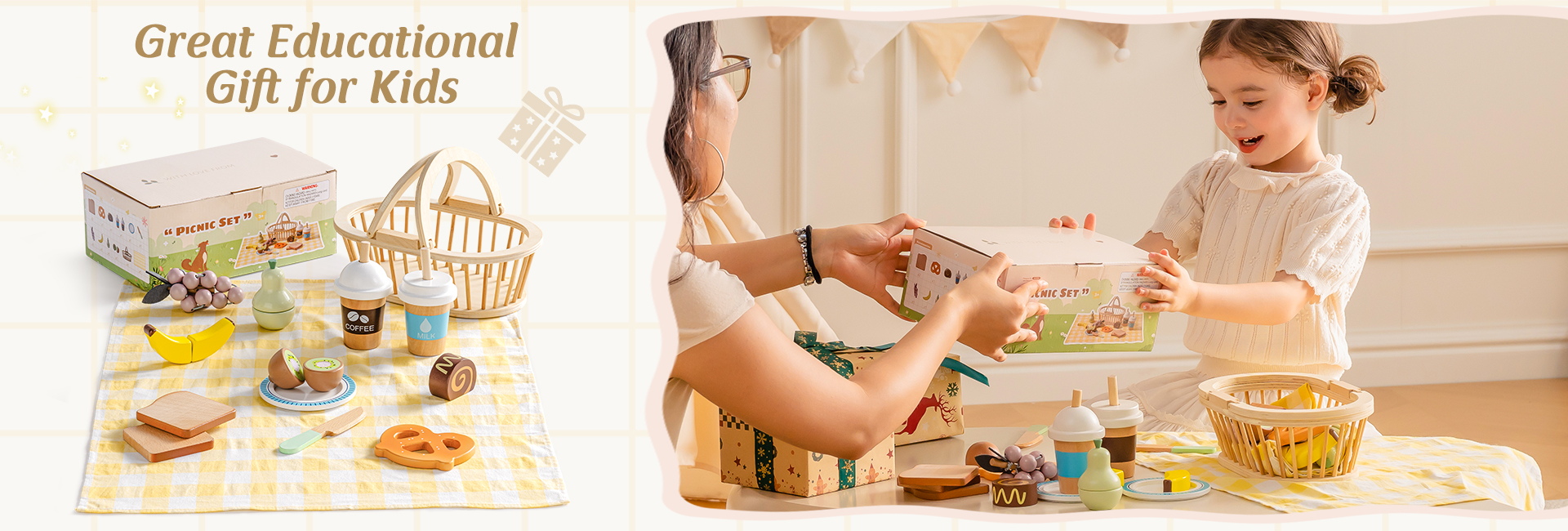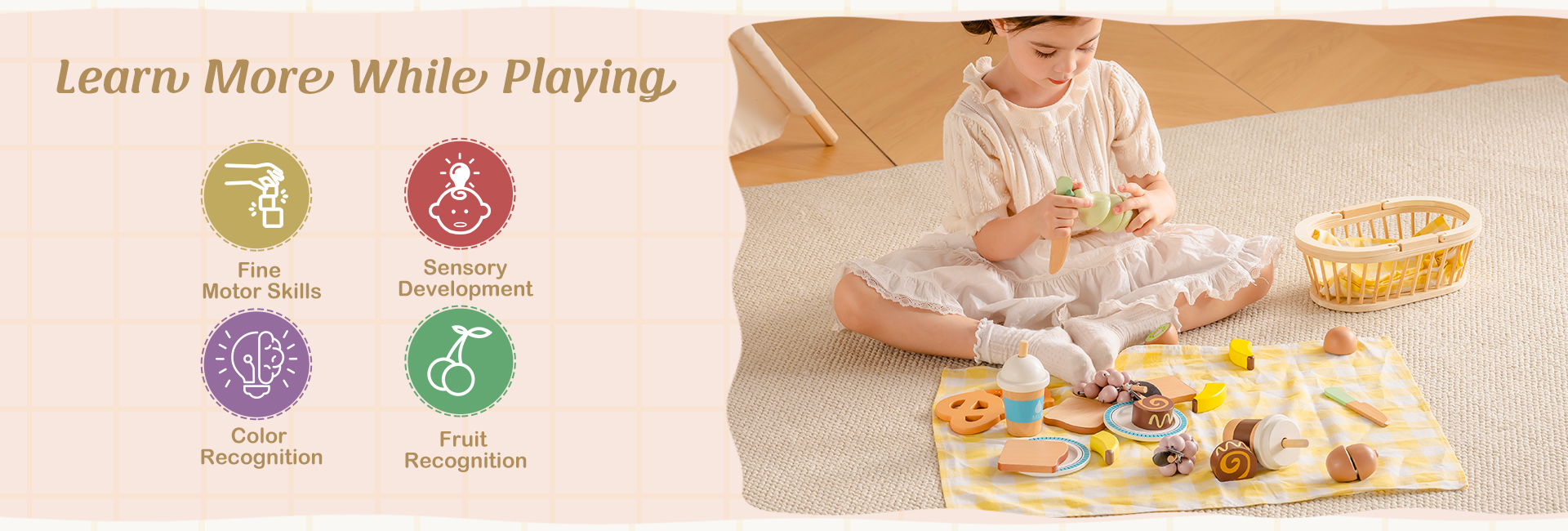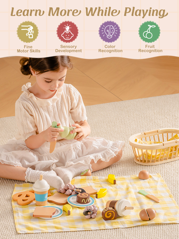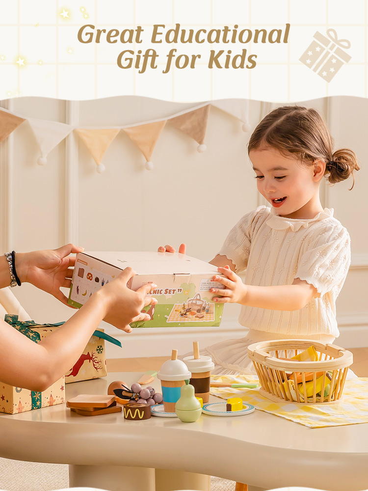 - Divertimento creativo nel gioco di ruolo da picnic: Con una varietà di cibi e un cestino da riempire, i bambini possono organizzare picnic di fantasia, condividere "caffè e torta", o giocare a mangiare all'aperto con amici e familiari—incoraggiando la creatività, la narrazione e l'interazione sociale.