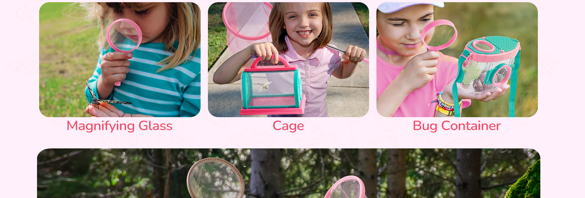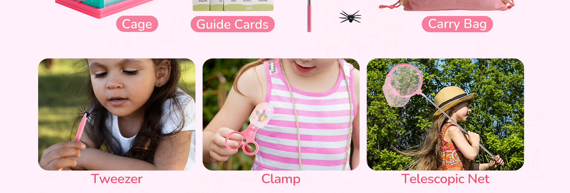 【Kit avventura tutto in uno】 Questo set completo include una lente d'ingrandimento per contenitore di insetti*1, set di schede guida*1, gabbia*1, rete telescopica*1, morsetto*1, pinzetta*1, lente d'ingrandimento*1 e borsa portatile*1. Ha tutto ciò di cui i bambini hanno bisogno per immergersi in emozionanti avventure all'aperto.
