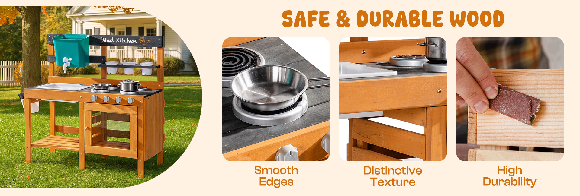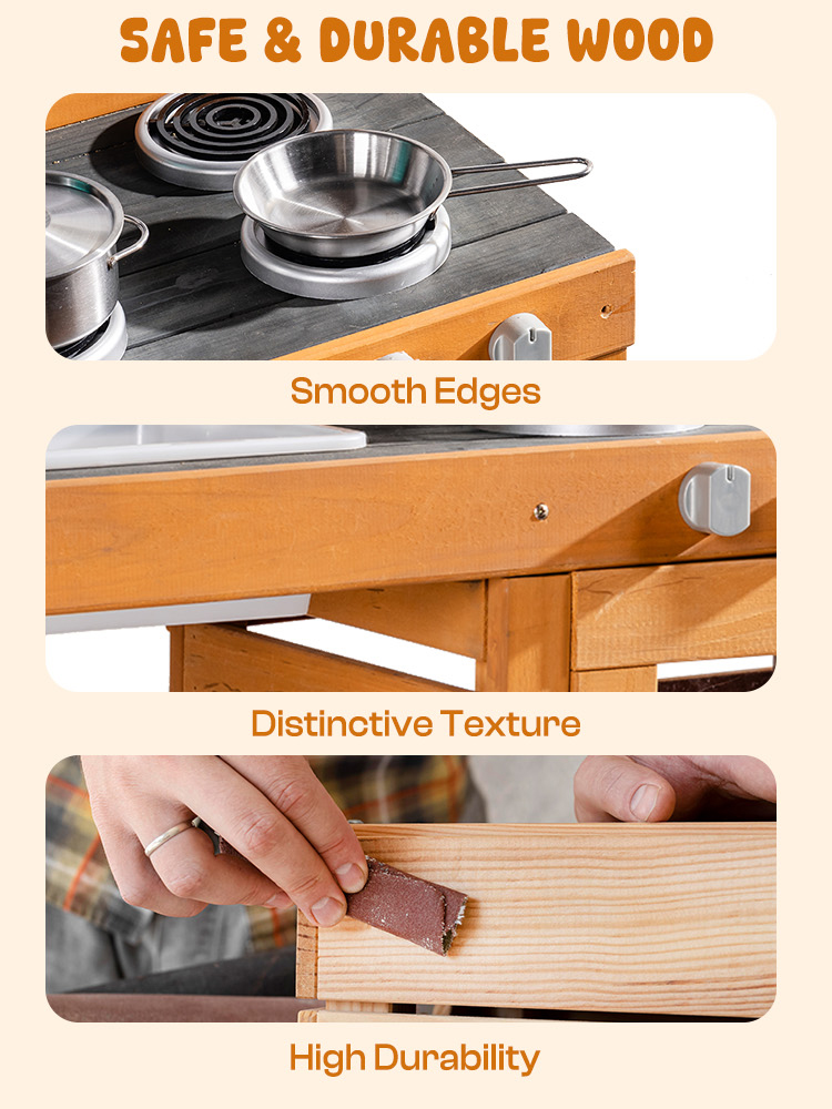 - Resistente e sicuro per i bambini: progettato per durare, questa cucina di fango per bambini all'aperto è realizzata in legno naturale con bordi lisci e levigati e finiture non tossiche. Resiste all'usura e alle intemperie, rendendola ideale per avventure all'aperto in cucina di fango tutto l'anno. La struttura robusta e i materiali sicuri garantiscono ai genitori di potersi rilassare mentre i bambini giocano liberamente.