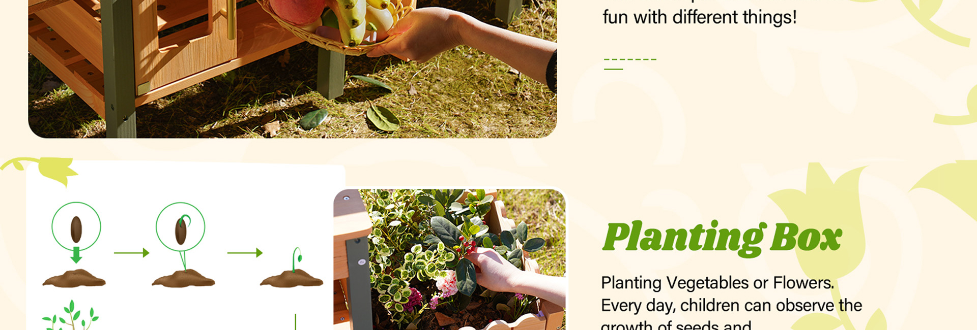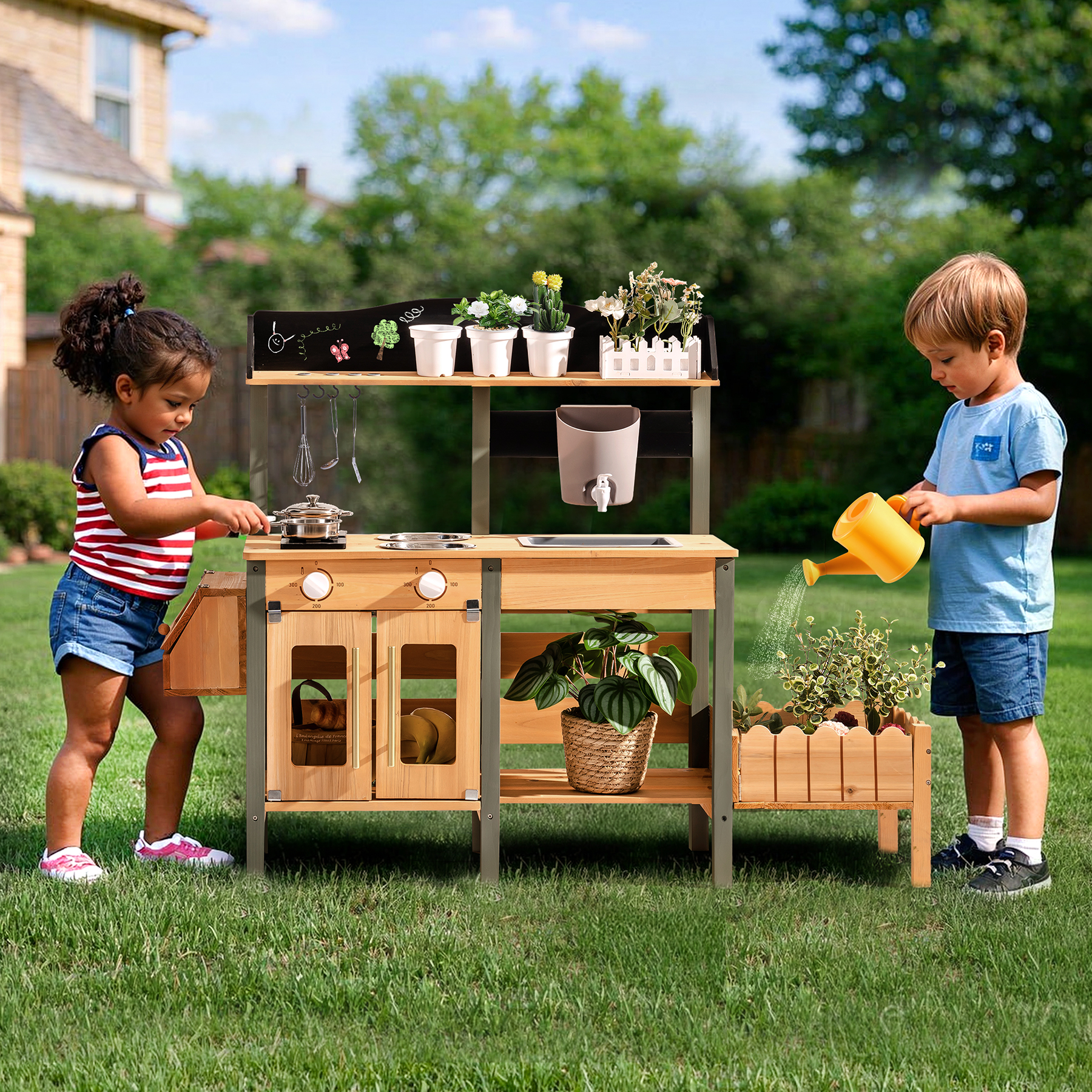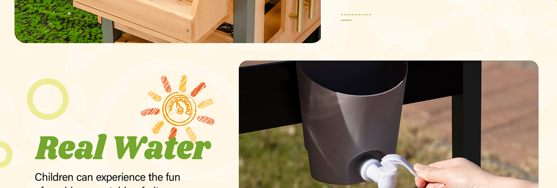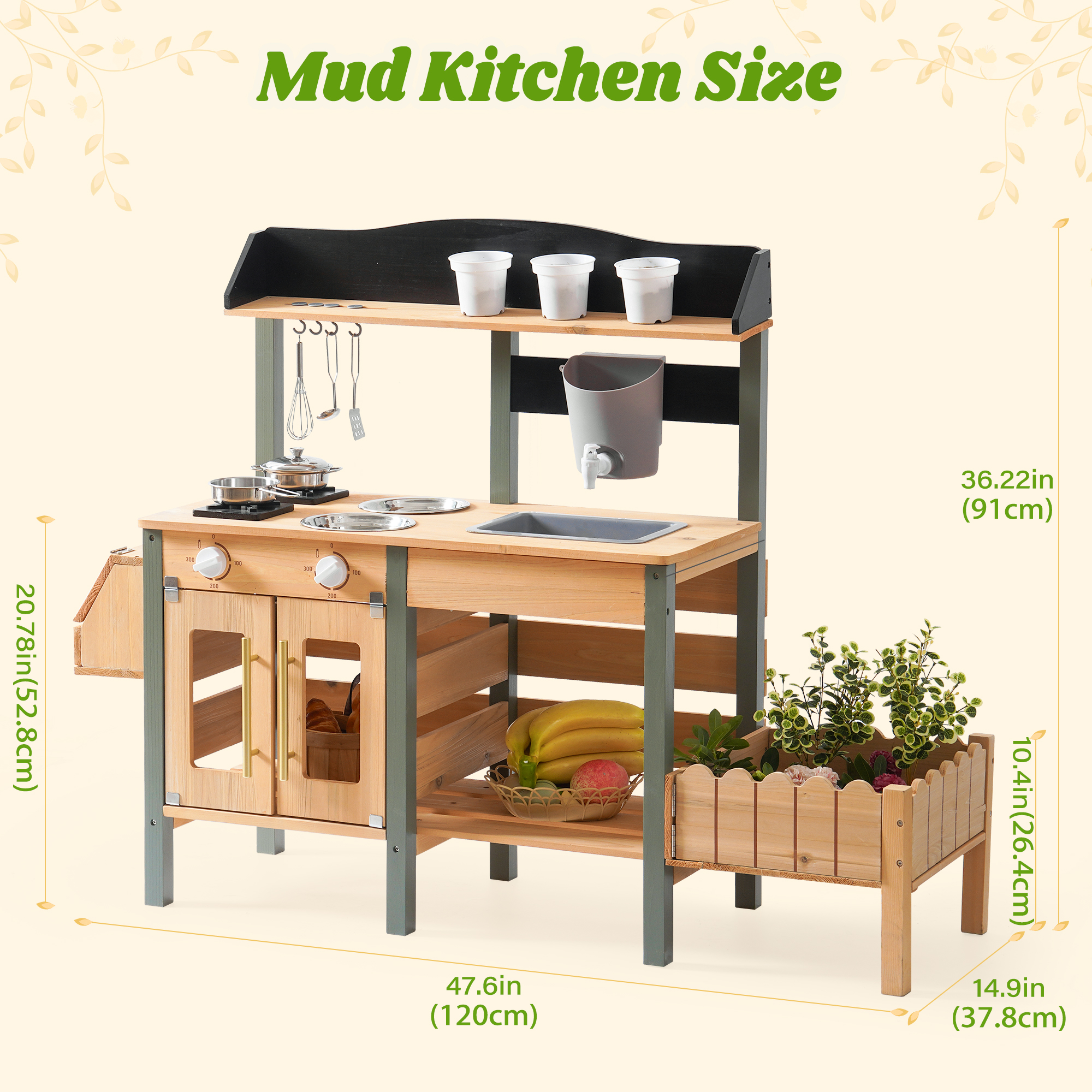 Costruzione Durevole & Sicura: Realizzata in legno di alta qualità, questa cucina di fango è costruita per durare e resistere alle condizioni esterne. Il design a misura di bambino garantisce un gioco sicuro con bordi lisci e una costruzione robusta per ore di divertimento.