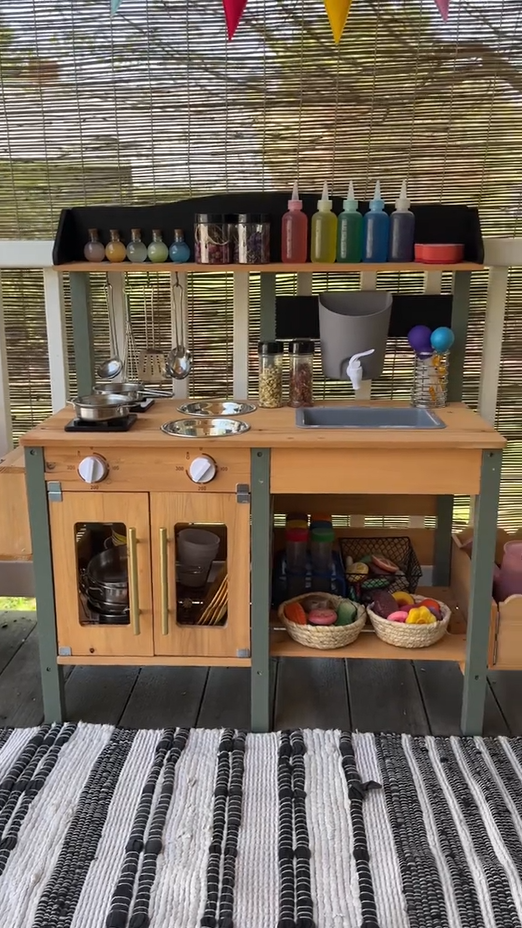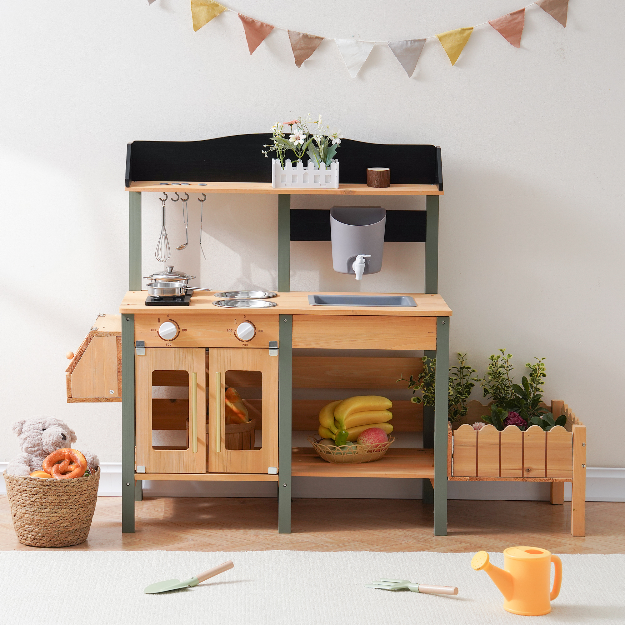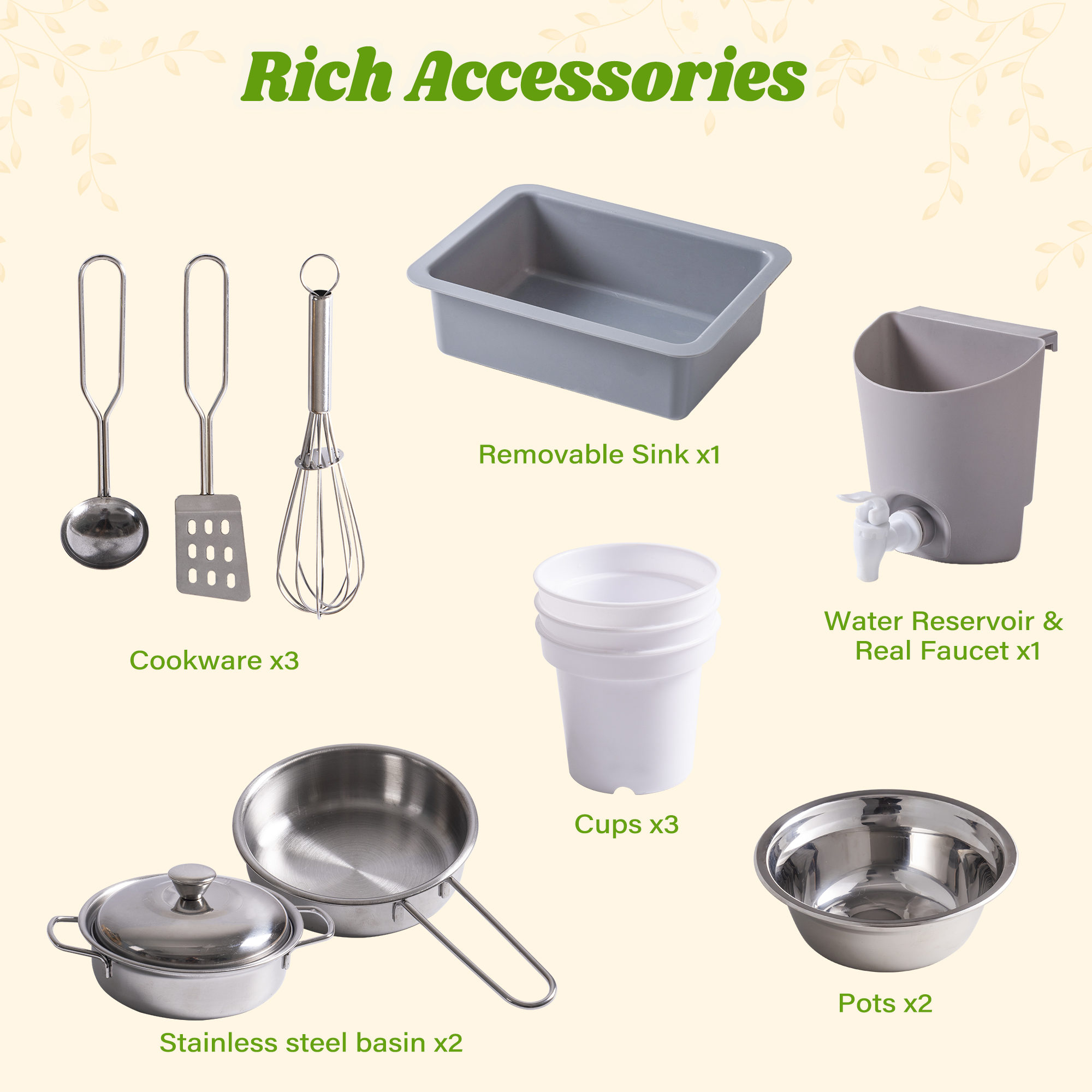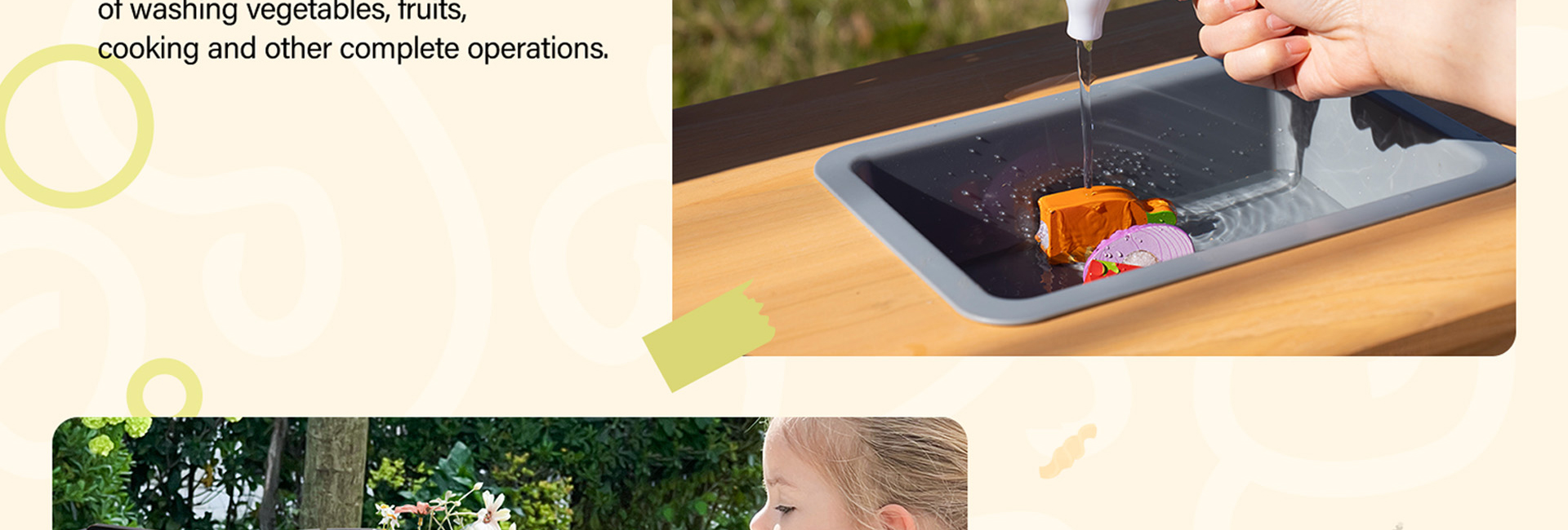 Caratteristiche Realistiche: Dotata di un lavandino e di un'area di stoccaggio, questo set da cucina consente ai bambini di replicare attività di cucina utilizzando materiali naturali come sabbia e acqua. Incoraggia la creatività e il gioco di ruolo per avventure immaginative senza fine.