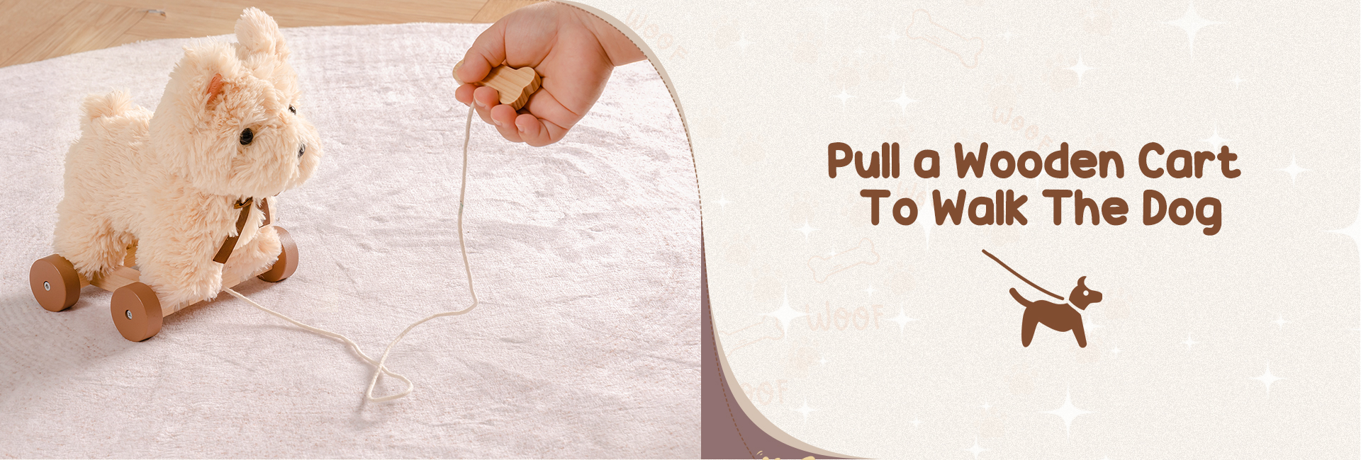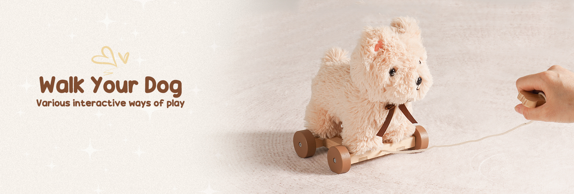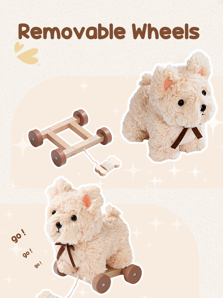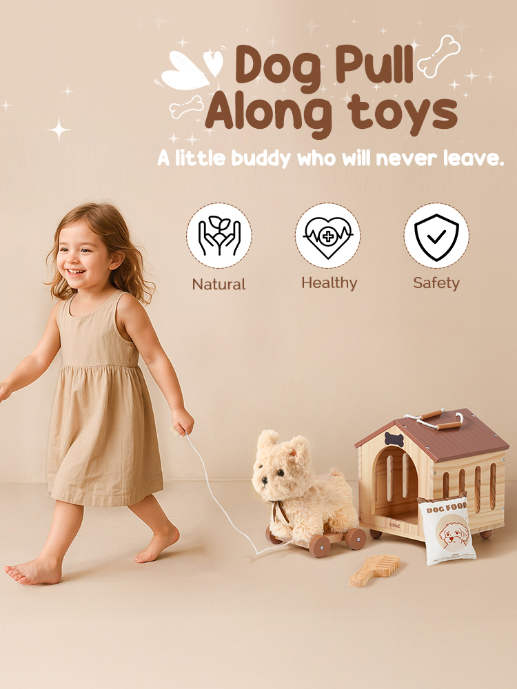 - Giocattolo Interattivo per Cuccioli da Trainare: Questo adorabile cane da trainare presenta un corpo in peluche coccoloso montato su ruote di legno, permettendo ai bambini di portare il loro cucciolo ovunque vadano. Il suo morbido pelo e il design carino offrono sia comfort che compagnia.