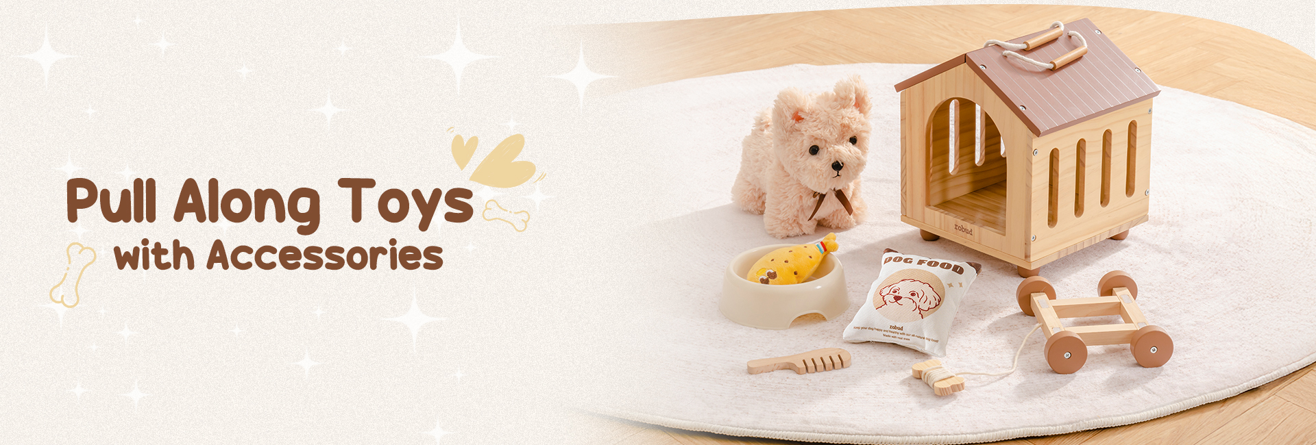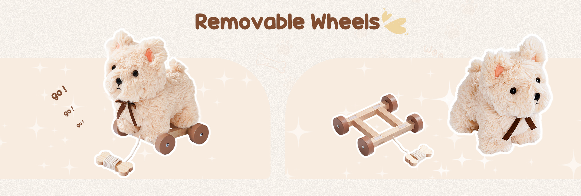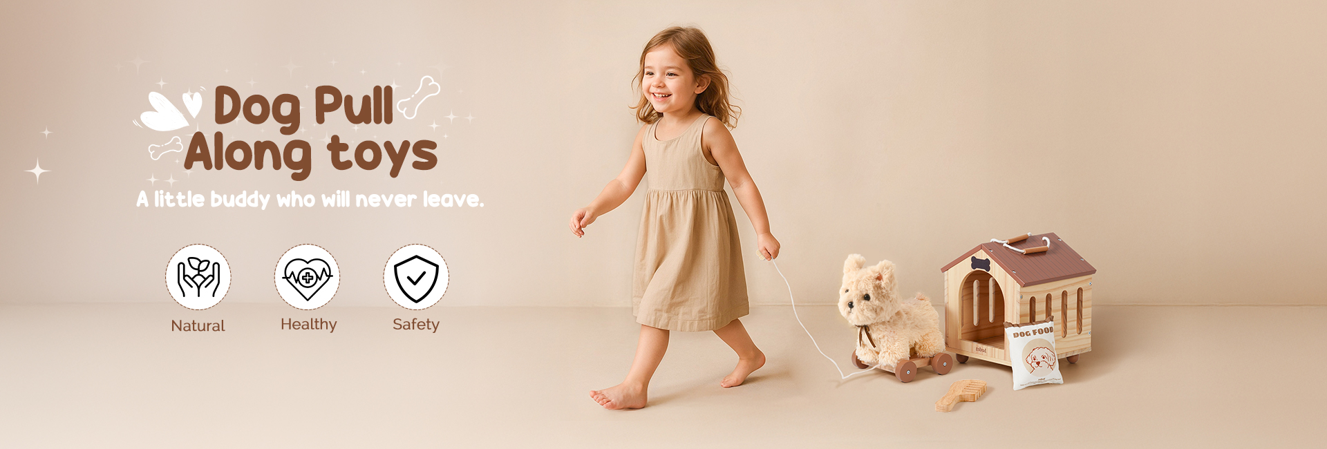 - Giocattolo Interattivo per Cuccioli da Trainare: Questo adorabile cane da trainare presenta un corpo in peluche coccoloso montato su ruote di legno, permettendo ai bambini di portare il loro cucciolo ovunque vadano. Il suo morbido pelo e il design carino offrono sia comfort che compagnia.