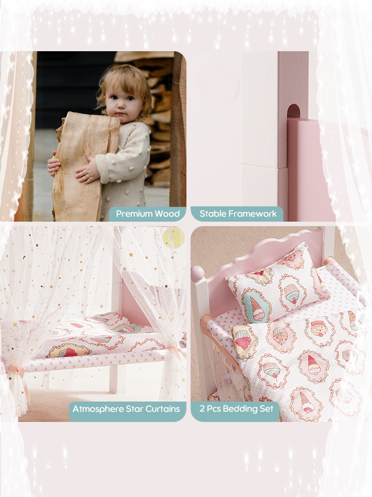 【Facile Montaggio】Il nostro letto per bambole può essere facilmente assemblato da una sola persona, risparmiando tempo e fatica. Non sono necessari strumenti complicati!