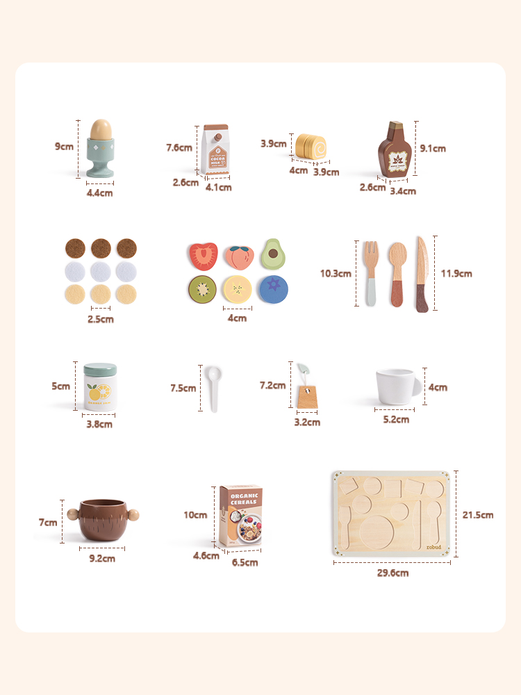 Set di Cibo Realistico: Include oltre 30 pezzi in legno come avocado, cereali, uova, frutta, sciroppo d'acero e succo. I bambini possono servire pasti finti utilizzando le posate, la pentola e il piatto, incoraggiando ore di divertimento interattivo in cucina.