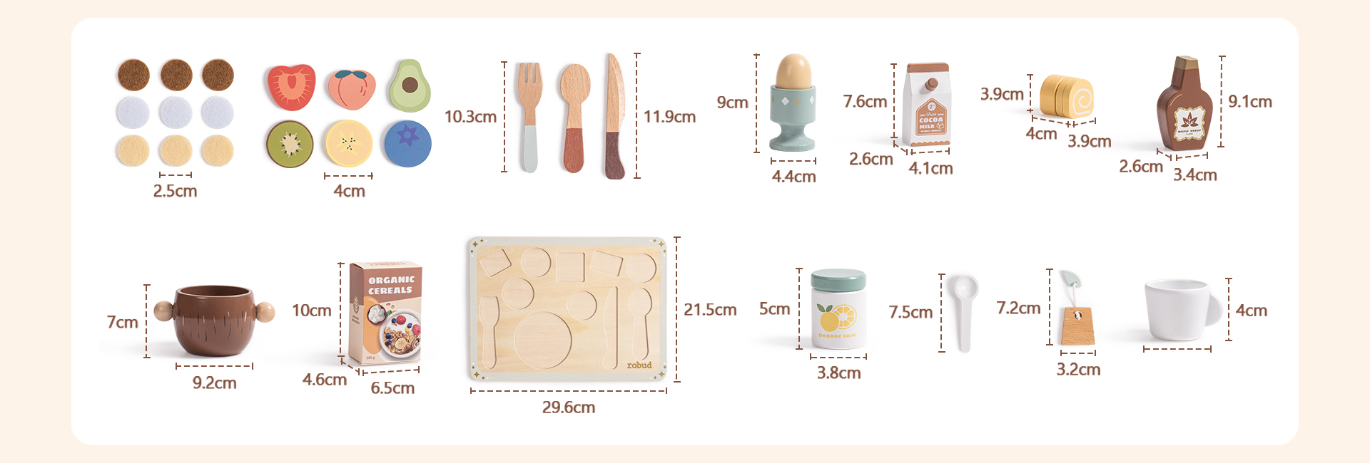Gioco di Pretend senza Fine: Il set di cibo in legno ROBUD consente ai bambini di divertirsi con varie attività di gioco di ruolo. Possono fingere di essere chef, gestire un caffè o preparare la colazione, promuovendo la creatività e lo sviluppo delle abilità sociali.