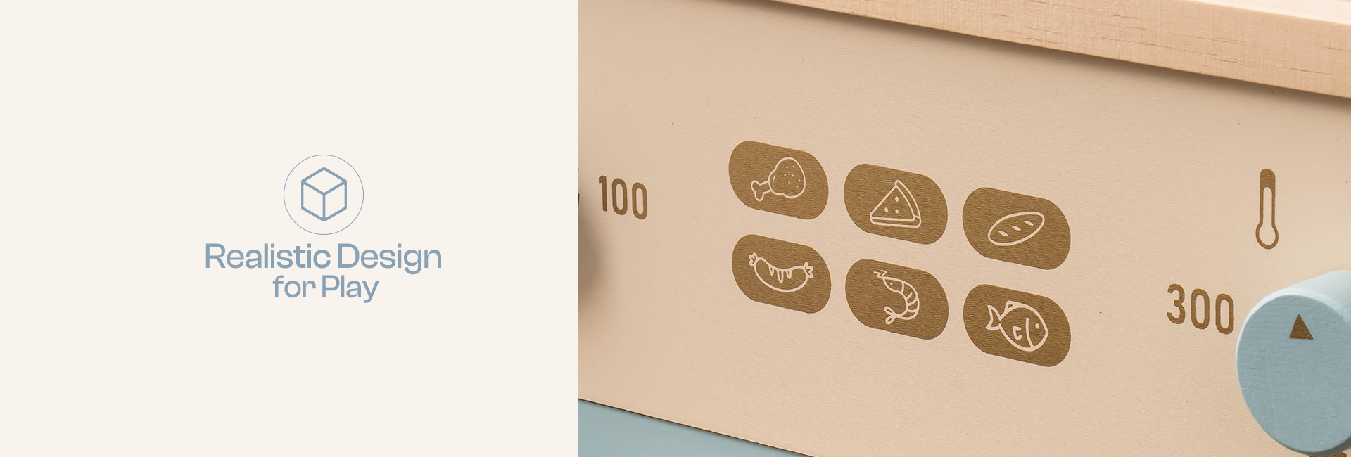 FUNZIONI MULTIPLE: Con un focus su frittura, grigliatura e cottura al forno, completato da manopole sonore realistiche, questo forno consente ai bambini di provare una gioia genuina nel simulare il processo di cottura. La combinazione di funzioni diverse arricchisce l'esperienza di gioco e stimola la creatività dei bambini.