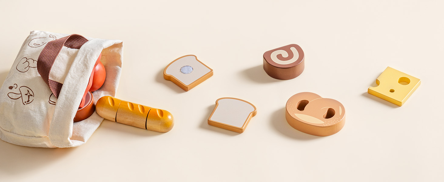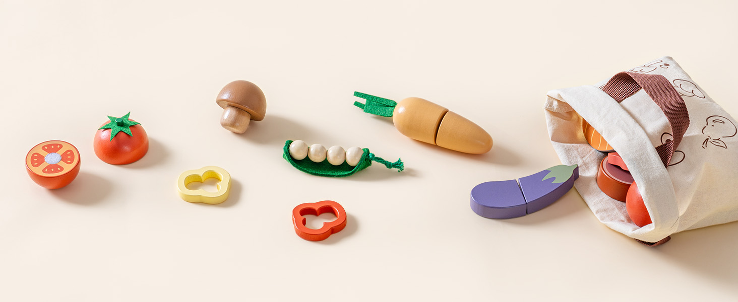 - Conservazione ordinata, facile pulizia: Viene fornito con una robusta borsa in cotone con adorabili illustrazioni di cibo, rendendo la conservazione e il trasporto un gioco da ragazzi. Mantiene l'area di gioco organizzata e incoraggia i bambini a riordinare in modo indipendente dopo il gioco, promuovendo responsabilità e ordine.
