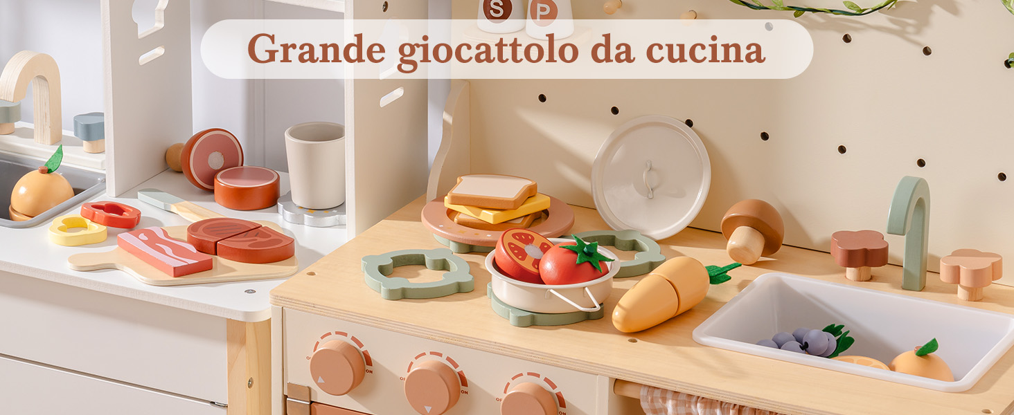 - APPRENDERE GIOCANDO: Insegna al tuo piccolo il cibo, l'alimentazione sana e la preparazione dei pasti in modo pratico. Questo set di giocattoli incoraggia l'apprendimento precoce attraverso il gioco, aiutando i bambini a riconoscere diversi alimenti, praticare il raggruppamento e l'abbinamento e comprendere i concetti di base della cucina in un ambiente ludico.