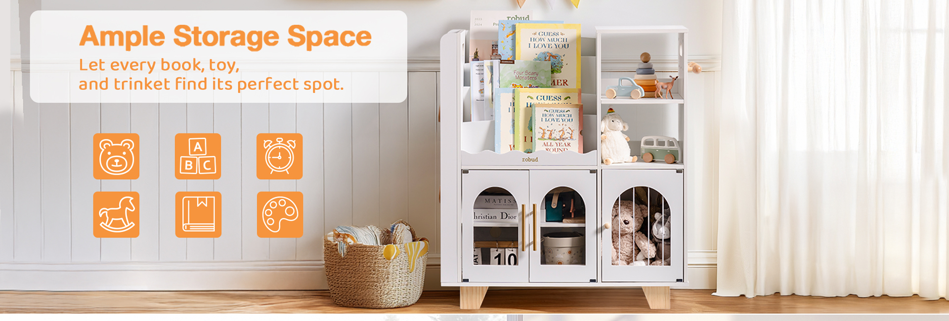 INCORAGGIA IL GIOCO CREATIVO E L'APPRENDIMENTO: Progettato per favorire l'amore per la lettura e il gioco immaginativo, questo organizzatore fornisce uno spazio dedicato per i libri, i lavori manuali e i giocattoli preferiti del tuo bambino. Ispira abitudini ordinate e aiuta a creare un ambiente calmo e coinvolgente, perfetto per il momento della storia e il gioco.