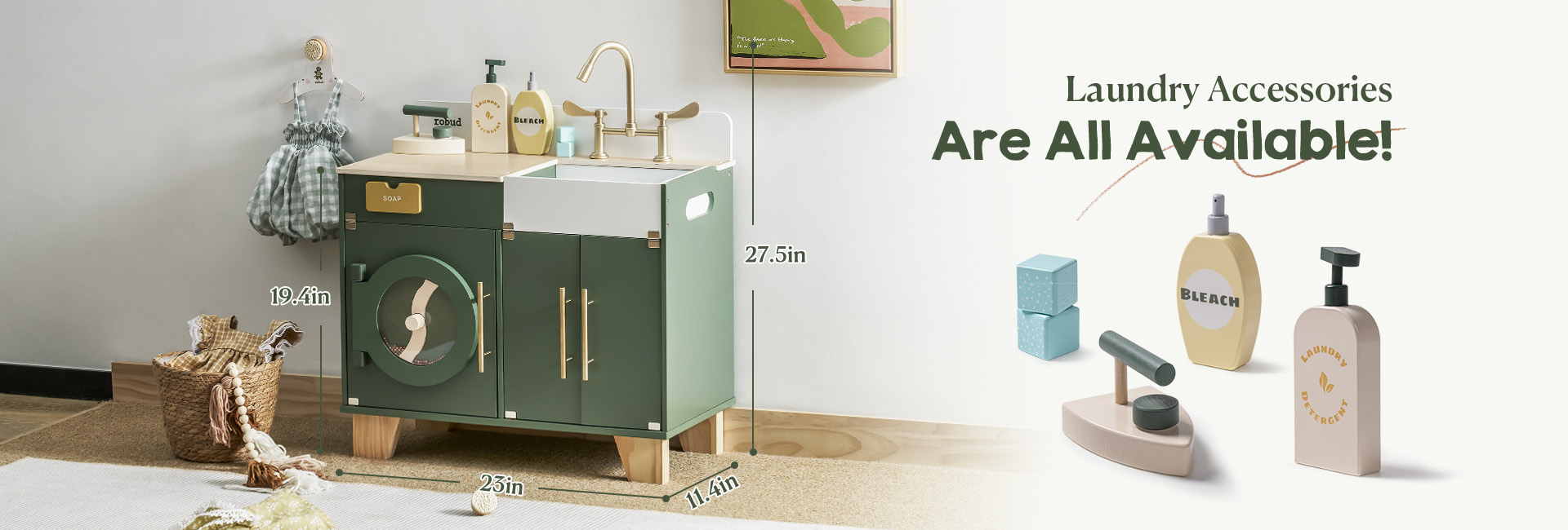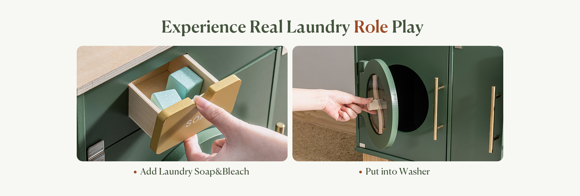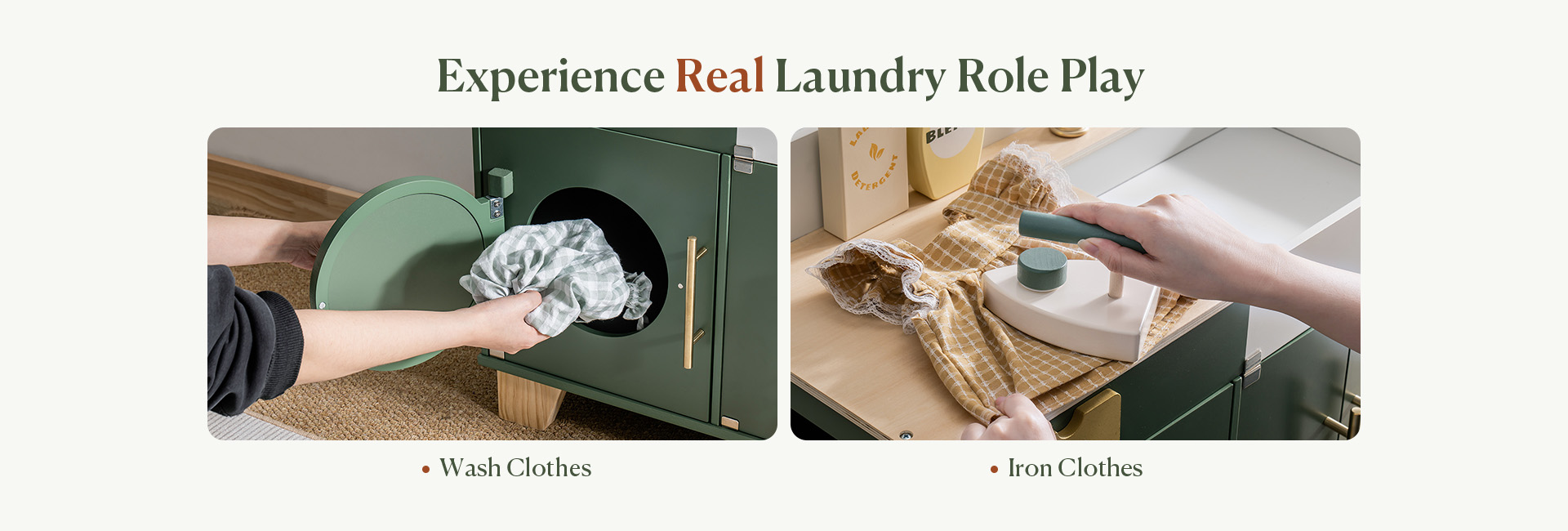- 🧺 Accessori Abondanti 🧺 Entra in un mondo di divertimento ed esplorazione con il nostro set di lavatrice ricco di accessori diversi! Da una deliziosa bottiglia di candeggina in legno a detersivo per bucato, un ferro da stiro e due blocchi di detersivo, la varietà di opzioni promette un'esperienza di gioco vivace e realistica per i bambini. Lascia che la loro immaginazione voli mentre si impegnano in una varietà di scenari di gioco, favorendo la creatività e le abilità pratiche in un ambiente di lavanderia simulato.