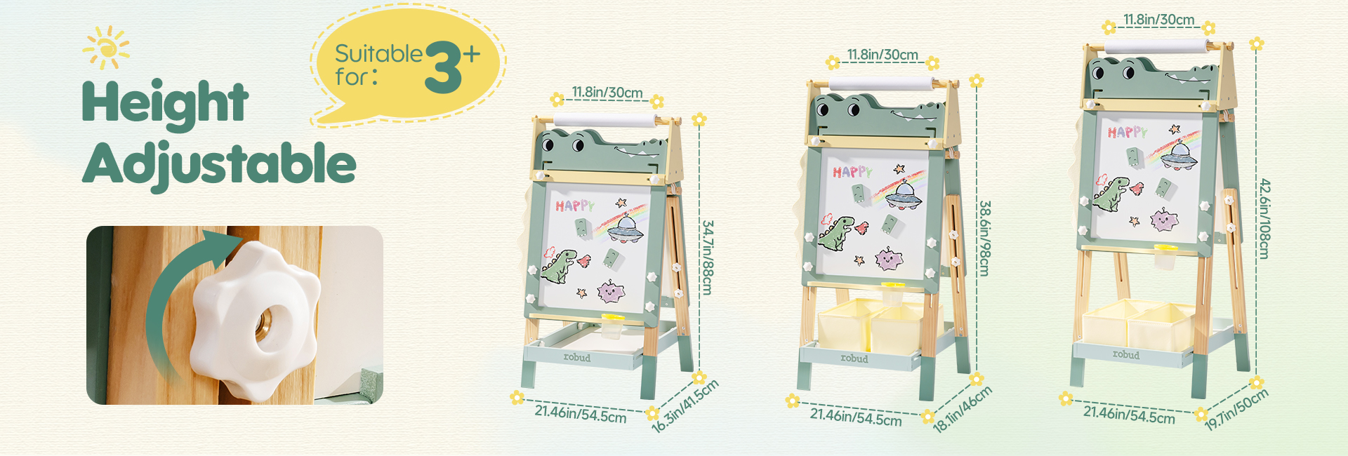 - 【Facile da Assemblare】Si assembla in 10 minuti attaccando solo 4 gambe. Caratteristiche di design pieghevole salvaspazio. Le impostazioni di altezza regolabili del cavalletto per bambini crescono con tuo figlio dai 3 agli 8 anni.