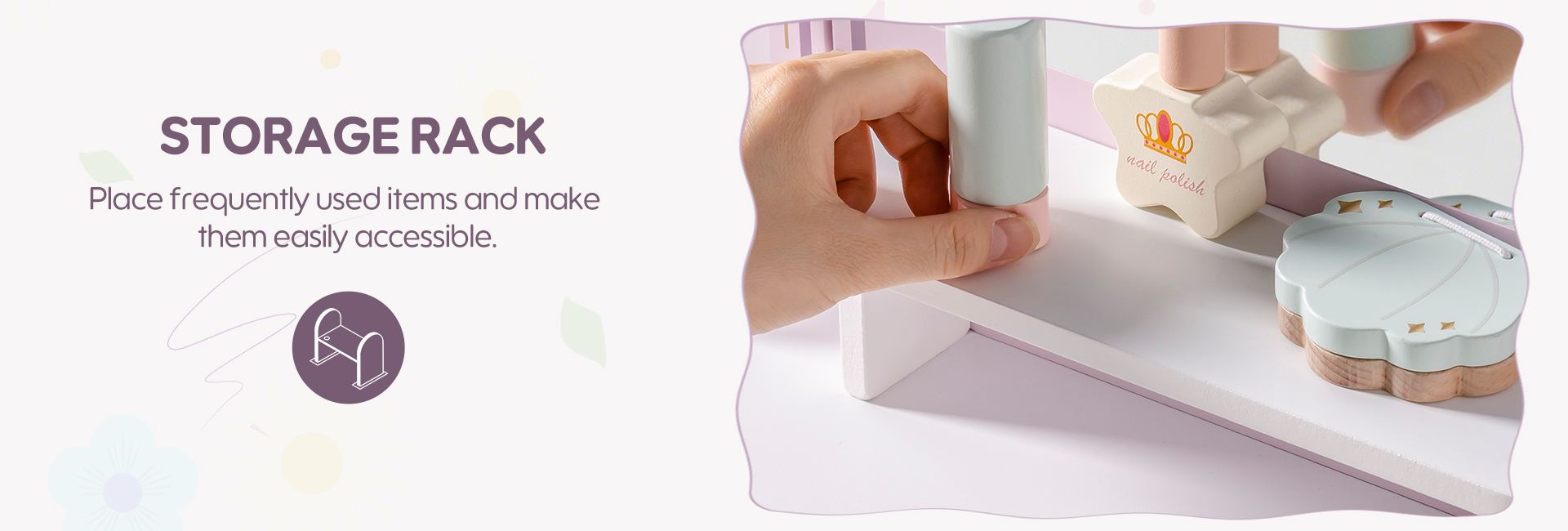 【Costruzione Durevole】Il nostro tavolo da trucco giocattolo è realizzato interamente in legno, che ha una resistenza e durabilità superiori rispetto alle alternative in plastica, garantendo anni di utilizzo affidabile.