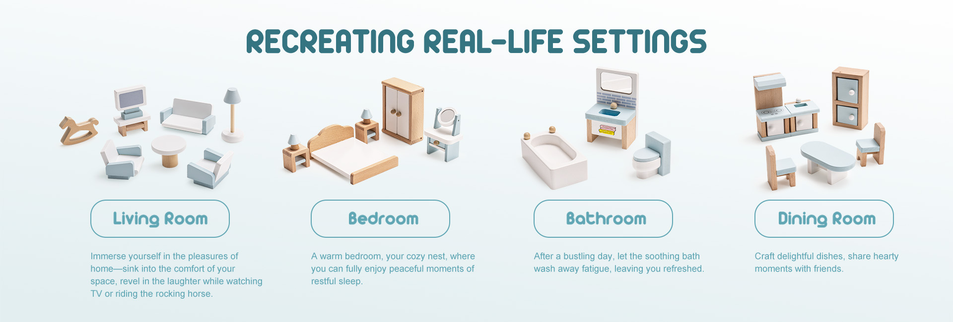 UNA SCELTA TOP PER I REGALI: I mobili per casa delle bambole ROBUD non sono solo un regalo eccezionale per i bambini; è una scelta calorosa che illumina la loro infanzia. Ogni pezzo di mobilio meticolosamente realizzato serve come un regalo unico e delizioso, portando gioia e creando ricordi duraturi, sia per compleanni, festività o occasioni speciali. Il set di mobili è confezionato in una squisita scatola colorata, è il regalo perfetto per il tuo piccolo.