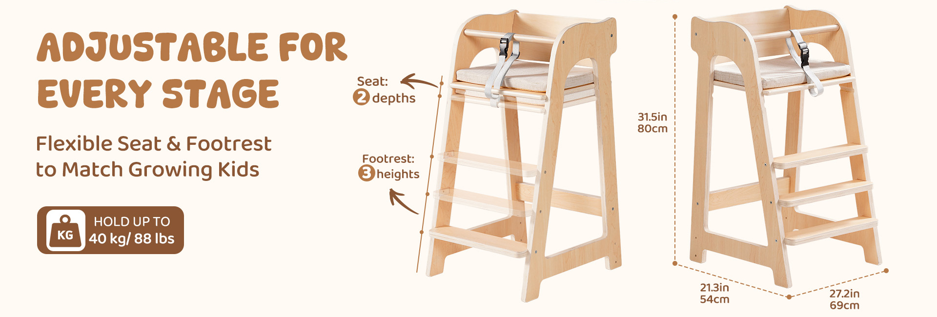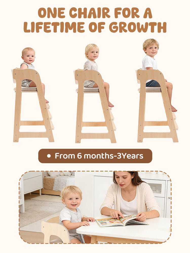 - Design regolabile che cresce con il tuo bambino: Questa sedia alta in legno è progettata per accompagnare il tuo piccolo dai 6 mesi fino all'età adolescenziale, supportando fino a 40 kg. Il sedile e il poggiapiedi sono completamente regolabili in altezza e profondità, consentendo ai genitori di personalizzare facilmente la sedia in base alla taglia del bambino e all'altezza di qualsiasi tavolo da pranzo, garantendo comfort ergonomico in ogni fase della crescita.