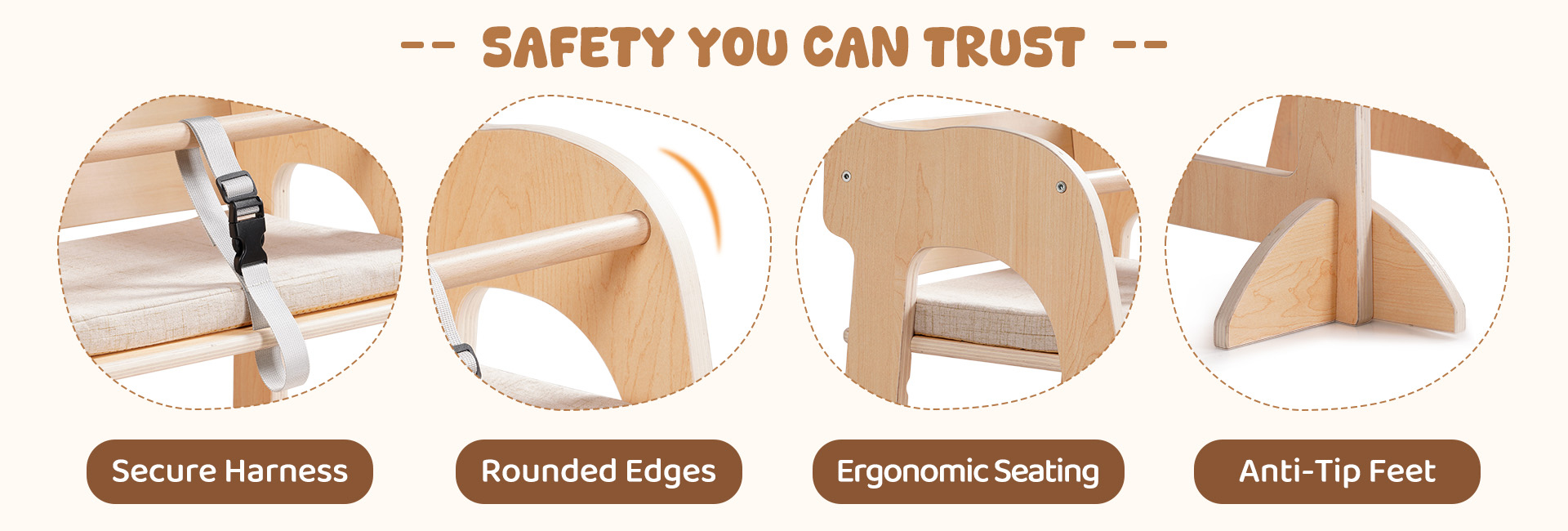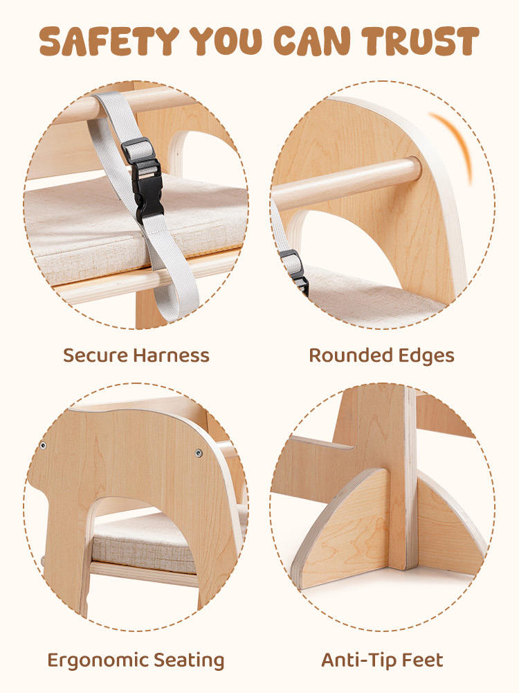 - Costruzione sicura, stabile e durevole: Realizzata in legno naturale di alta qualità, questa sedia offre una soluzione di seduta robusta e affidabile. La sua struttura solida resiste al ribaltamento, mentre i bordi lisci e arrotondati prevengono urti accidentali. Finitura con vernice non tossica e sicura per i bambini, offre una protezione completa per neonati e bambini piccoli, rendendola una scelta ideale per i genitori che apprezzano la sicurezza e la qualità.